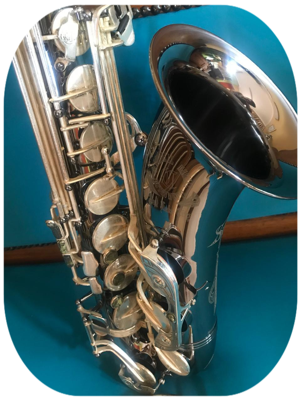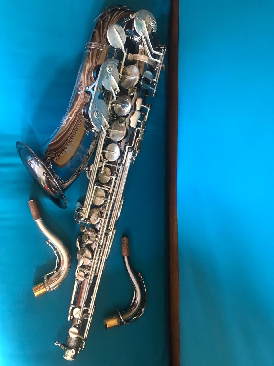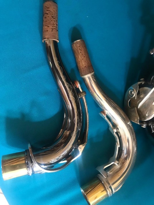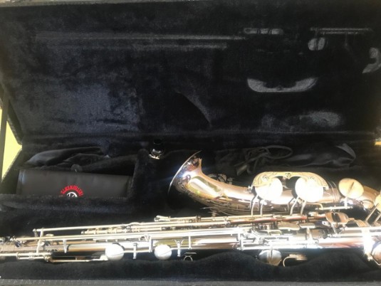 This saxophone has a nickel plated body and silver keys in perfect playing condition. Body lacquer fully intact but silver keys a bit tarnished. Only had one owner that was my student. Serviced by MusiCraft and good to go!!